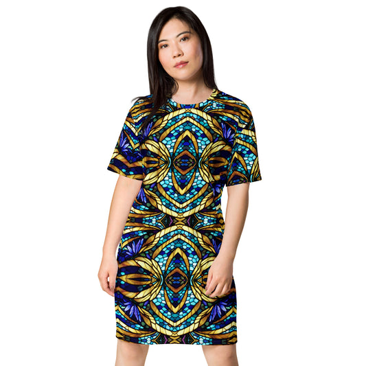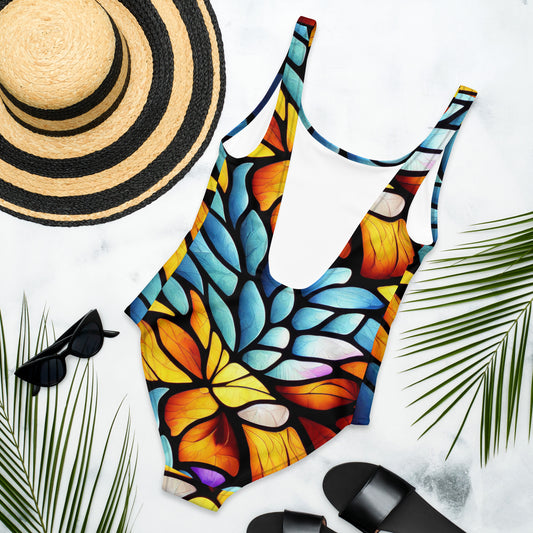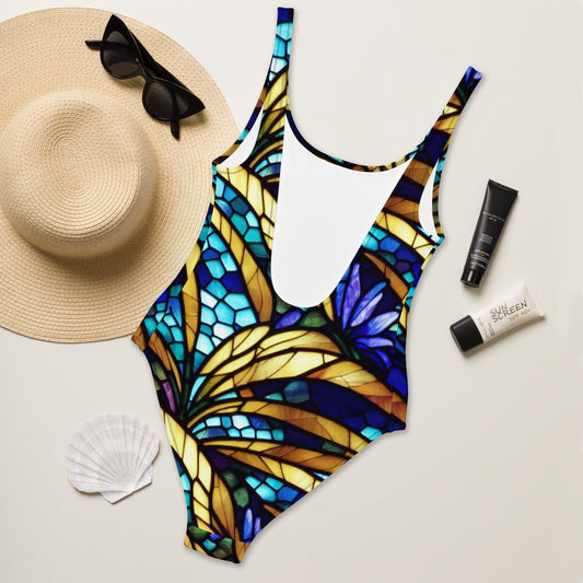 Blue and Gold Sea Glass One-Piece Swimsuit