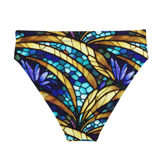 Blue and Gold Sea Glass High Waisted Bikini Bottom