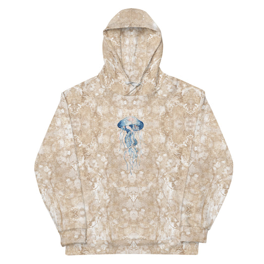 Sea Life - Jellyfish Print Fleece Lined Hoodie (Sand)