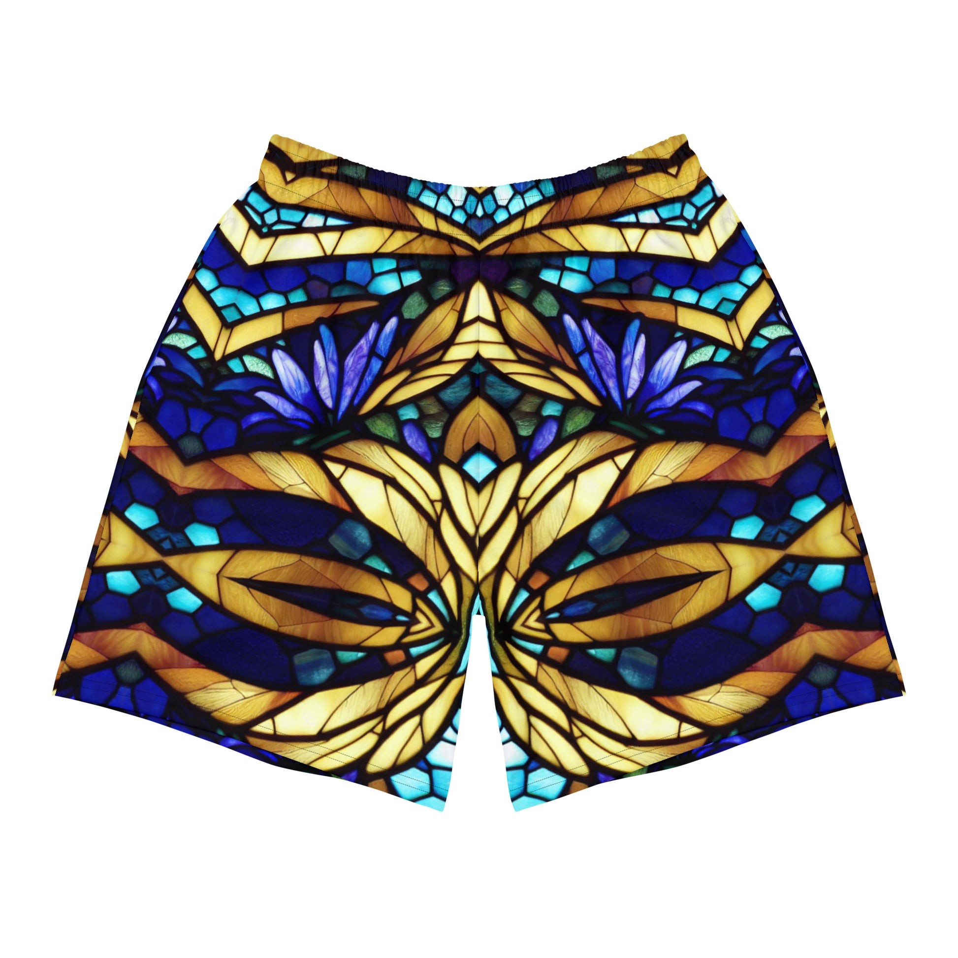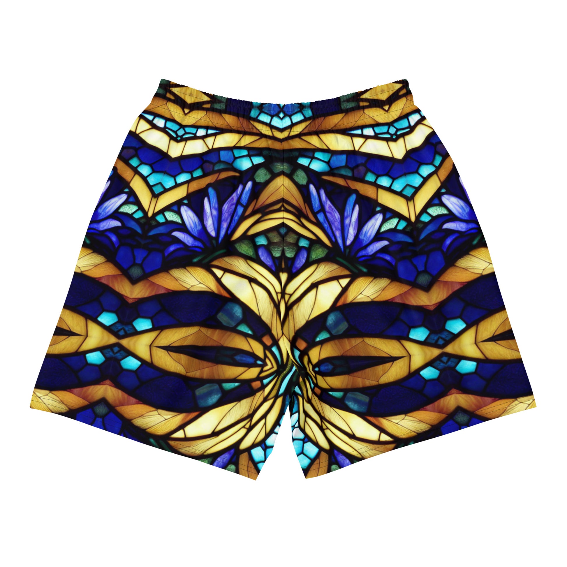Blue and Gold Sea Glass Long Board Shorts (Kaleidoscope)