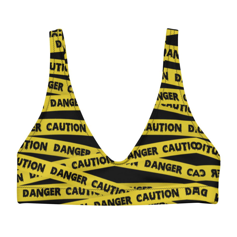 Caution Tape Print Recyled padded bikini top