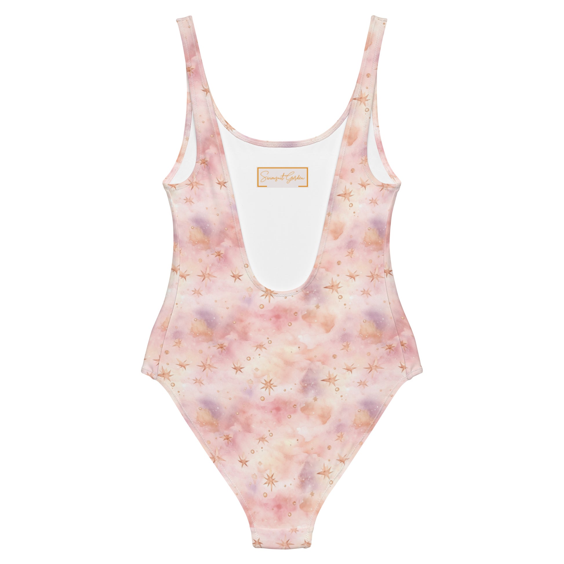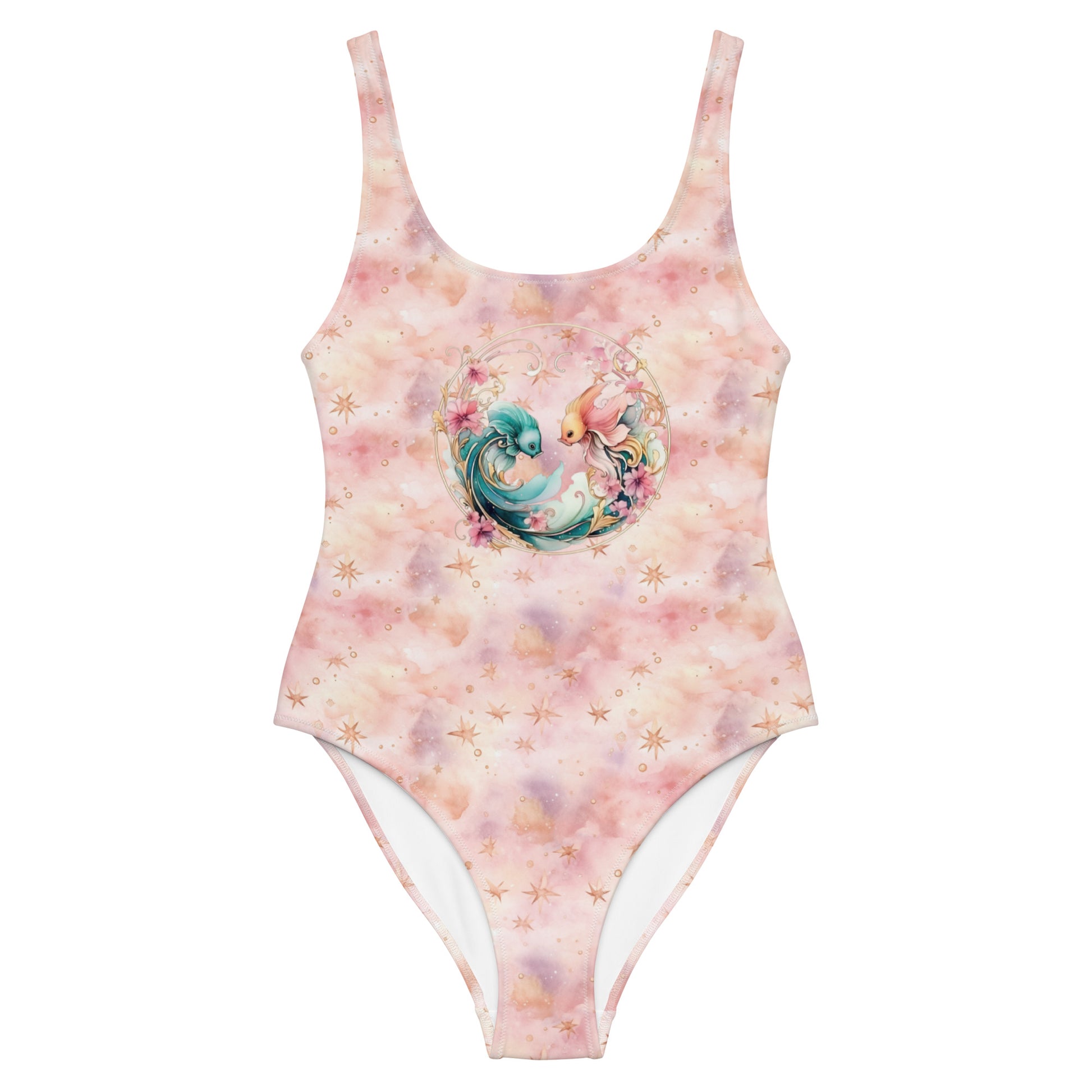Immerse yourself in cosmic charm with our Zodiac Collection One-Piece Swimsuit, featuring a captivating pink and gold star print and adorned with the ethereal Pisces zodiac symbol. Tailored for the astrology enthusiast, this swimsuit effortlessly blends celestial allure with beach-ready style, ensuring you embody the magic of the stars by the water.