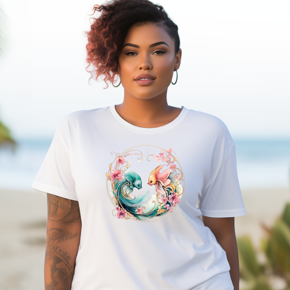 For those attuned to the mystical realms and governed by water, this tee becomes more than just clothing—it's an expressive link to the fluidity of the Piscean spirit. Embrace the soft touch of the cosmos, and let this tee be your wearable ode to the magic of Pisces. 🌌👕 #ZodiacEssentials #PiscesMagic