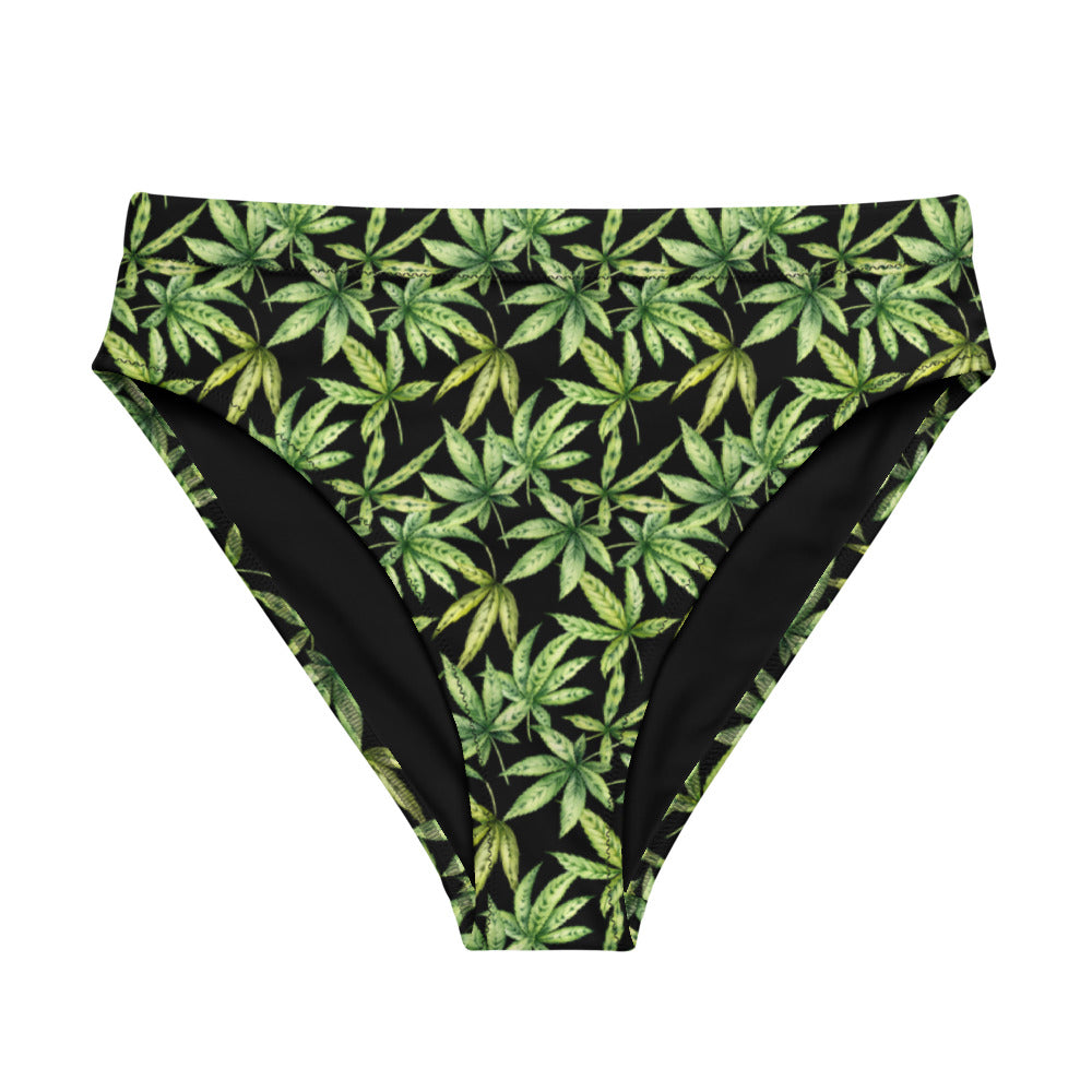 Recycled high-waisted bikini bottom - Cannabis Leaf print